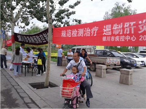 7月28日银川市疾控中心官方微博、网站有本次宣传主题和病毒性肝炎防治基本知识,向办事群众及中心职工进行肝炎防治宣传教育。同时我中心工作人员在兴庆区北塔公园开展了“世界肝炎日”现场宣传活动。在此次宣传活动中向群众面对面宣传各种肝炎的传播途径、预防与治疗措施,并为广大群众提供肝炎防治咨询,同时向群众发放肝炎、诺如病毒、中东呼吸综合征等相关知识宣传材料。通过发放宣传资料、现场咨询、现场讲解教育等宣传肝炎等传染病的相关知识,营造全民抗击传染病、维护生命健康的氛围。在本次宣传活动中,我中心共制作横幅1条,向现场群众发放传染病防治知识宣传折页300余份、宣传画100余张、宣传袋和围裙200条;活动现场气氛活跃,群众提问积极,专家解答认真,共接受了近50人的咨询。 通过本次宣传活动,大力宣传了病毒性肝炎防治知识和国家相关政策,提高了各级政府和社会各界对肝炎防治工作重要性的认识,提高了广大群众对肝炎防治相关知识的了解,倡导了全社会重视、关心并参与肝炎防治工作,达到了预期的效果。