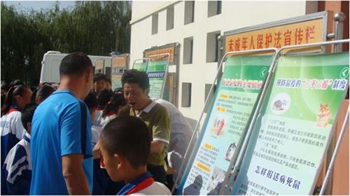 月牙湖乡滨河嘉园是宁夏生态移民重点区域,移民人员多达2万人,多数成年人都在月牙湖鼠疫疫源地内打工。月牙湖乡回民学校又是一所集幼儿、小学、初中为一体的义务教育学校,全校师生共2000余人。2009年曾在该地区发生了鼠间鼠疫疫情,而该地区学生群众对鼠疫防治知识、鼠疫“三不、三报”制度、传染病法律法规和学生常见病防治知识相对薄弱,中心对此情况相当重视,对此次宣传工作做了充分的准备,联系校方得到学校的大力支持,使当天的下基层宣传活动进行的生动、活泼。通过宣传,疫源地学生、群众初步掌握和了解了鼠疫防治知识、鼠疫“三不、三报”制度和校内常见传染病的预防及控制方法,进一步提高了学校传染病防治工作水平。